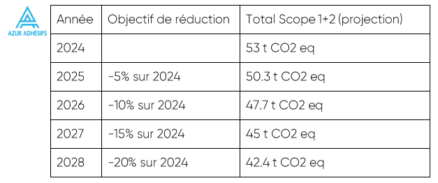 Objectif de réduction Scope 1 et 2 de 20% par rapport aux résultats de 2024.